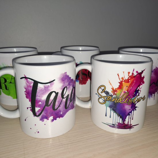 Our sublimated prints involve creating a design you’d like on a bottle, mug,
